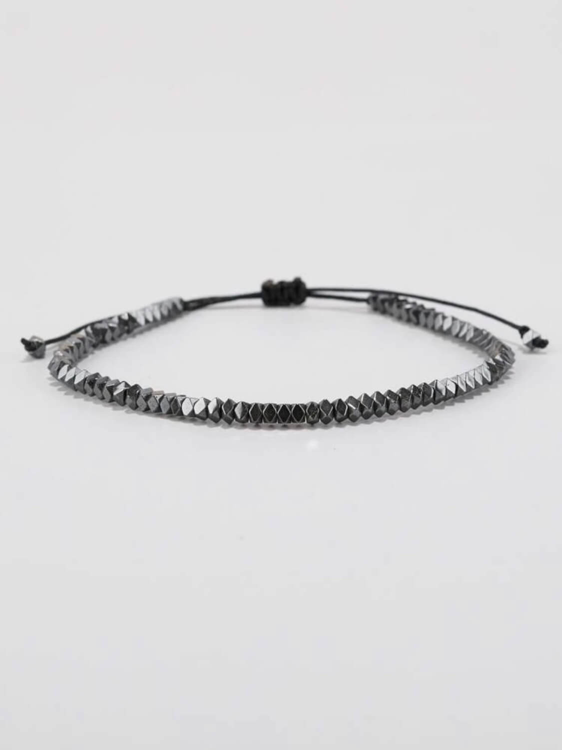 צמיד עם חרוזים מעוינים בצבע כסוף מושחר. צמיד מיוחד ויוקרתי עם סגירת חוט. עשוי מחרוזי אבן בעבודת יד, עמיד למים.