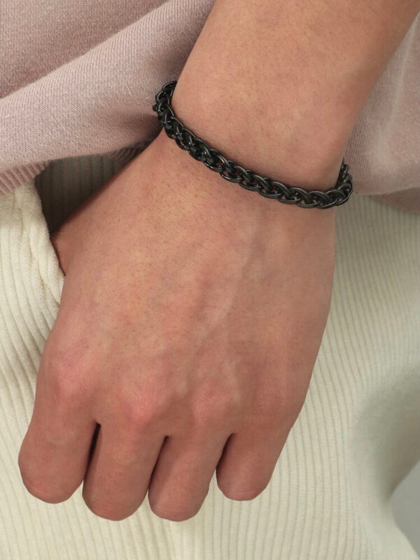 צמיד גורמט בצבע שחור. לאלו שרוצים צמיד עם נוכחות ודומיננטיות. עשוי מפלדת אל-חלד, עמיד במים.
