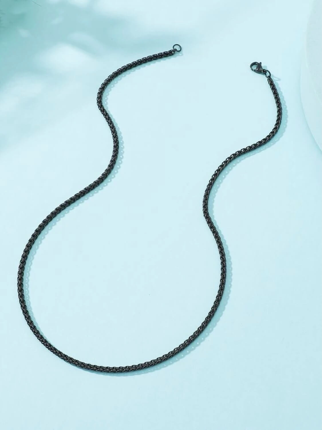 שרשרת גורמט קלאסית בצבע שחור. שרשרת עדינה בעיצוב מסולסל, כמו הגלים של הים. עשויה מפלדת אל-חלד, עמידה במים.