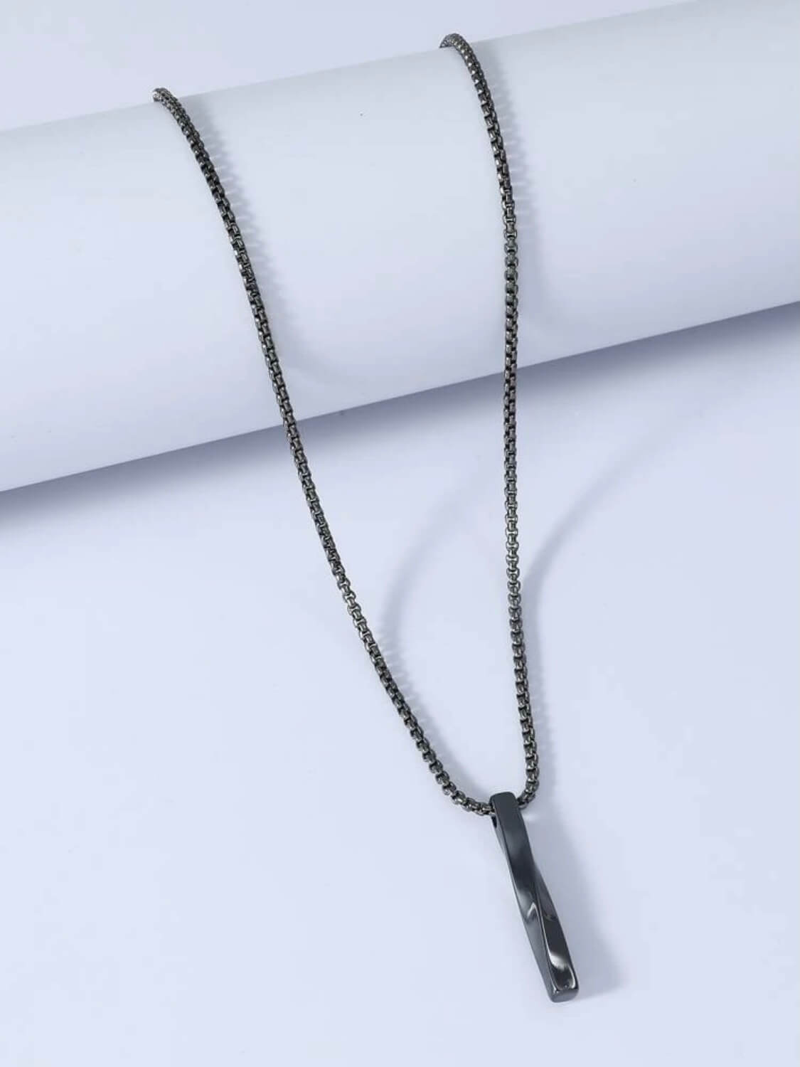 שרשרת עם תליון מלבן ארוך עם "טוויסט" בצבע שחור. שרשרת גברית שמוסיפה עניין ומסתורין, עם "טוויסט" שימשוך את העין. עשויה מפלדת אל-חלד, עמידה במים.