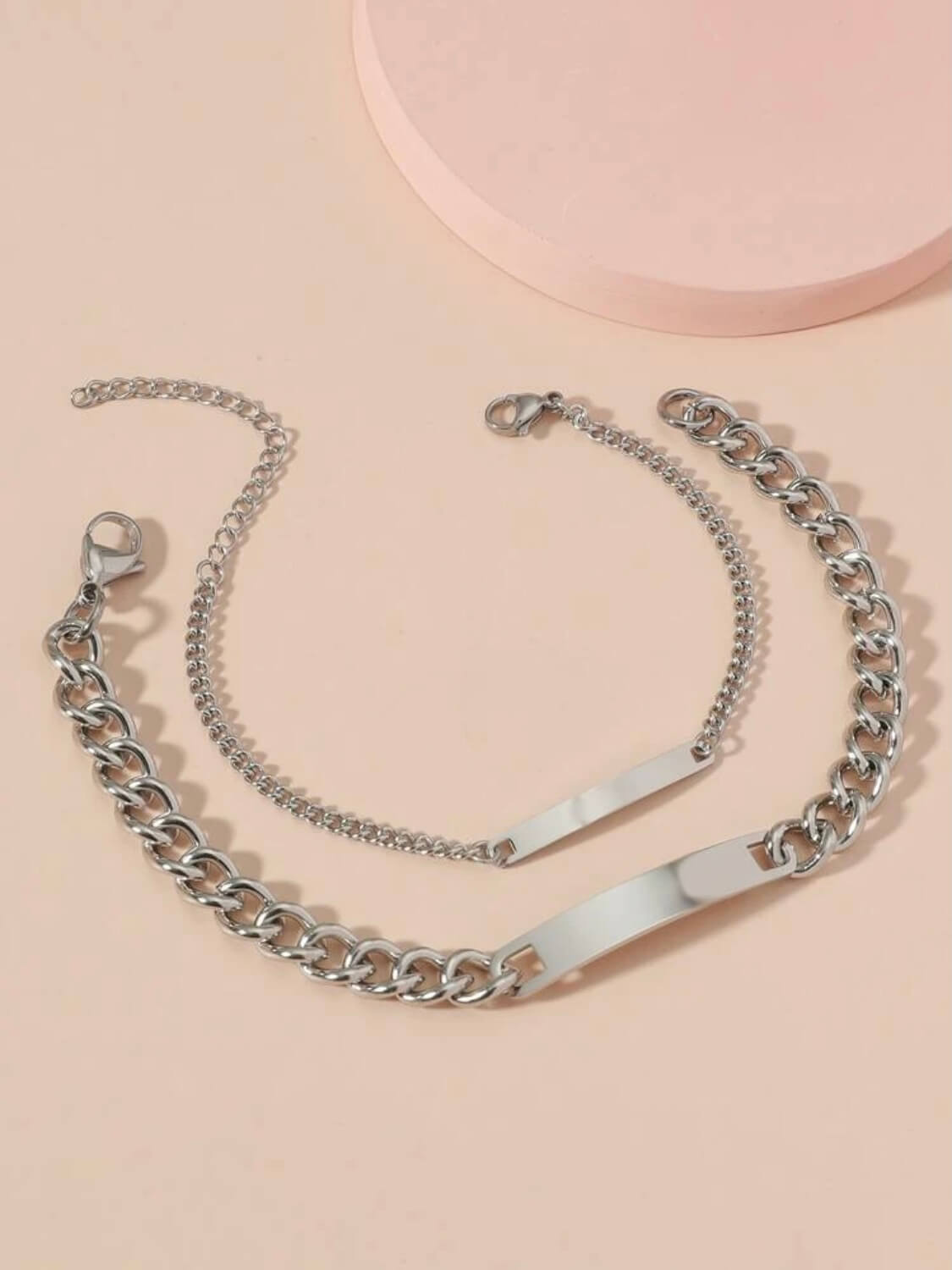 זוג צמידי גורמט בצבע כסוף. צמידים המשלימים אחד את השני, מתאימים גם בשילוב יחד וגם לבני זוג. עשויים מפלדת אל-חלד, עמידים במים.