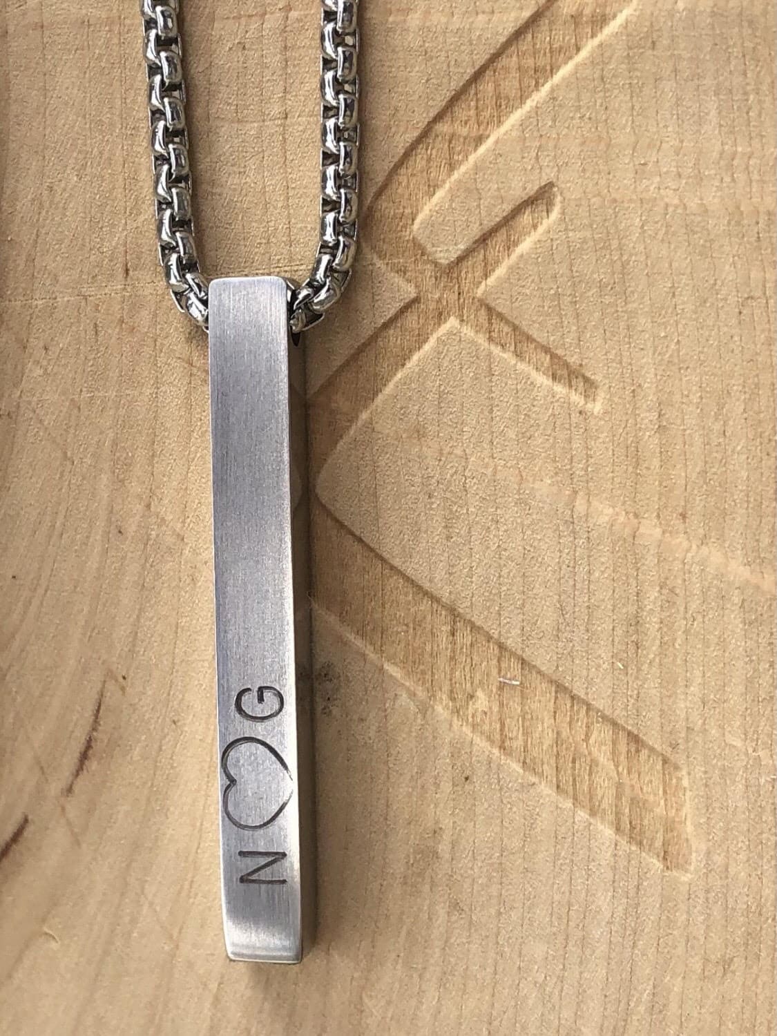 שרשרת עם תליון ריבוע קטן בצבע כסוף עם חריטה אישית לבחירתכם: אותיות, מספרים ולב/מגן דוד.